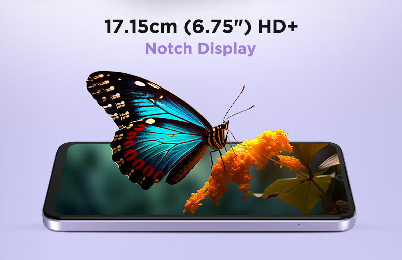 | Size | 17.15cm (6.75") HD+ Notch Display with 2.5D Glass, 60Hz Refresh Rate & Aspect Ratio of 20:9 |